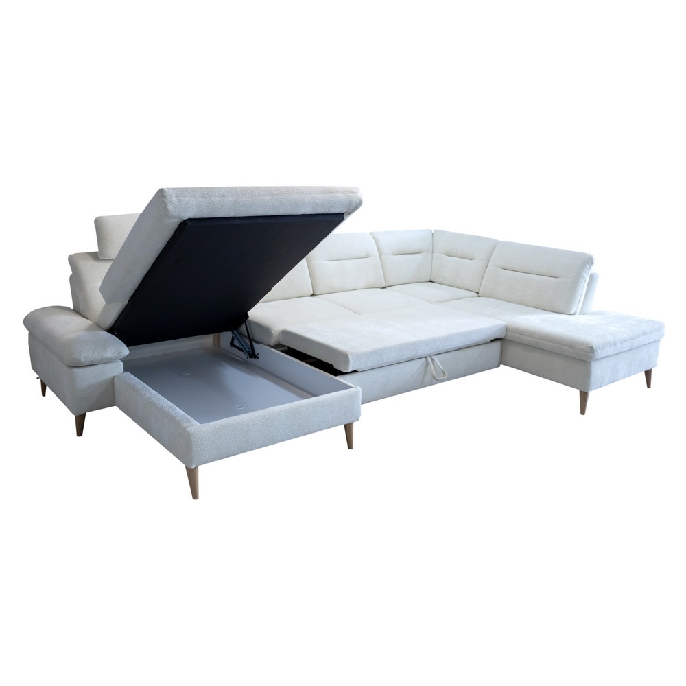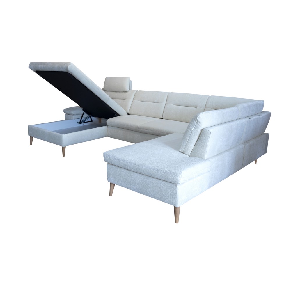 Letisztult és formatervezett, funkcióját tekintve sokoldalú, rendkívül jól variálható modell! A méretekkel játszva típusaiból mind sarokkompozíció, mind a klasszikus összeállítás (2 karfás kanapé fotellel) kialakítható. Széles elemválaszték, egy típusegységen belül is több méret opcionális. Az esztétikumról az elegáns támlaoptikán kívül többfajta (fa és fém) láb gondoskodik változatos színekben, ráadásul a 16 cm magas láb az egyre elterjedtebb robotporszívó működését is lehetővé teszi. Az extra üléskomfort eléréséért hideghab beépítése kérhető. További kényelmet szolgál a kihúzható lábtartó funkció, illetve a különféle formájú fejtámaszok, a praktikumért pedig vendégágy és ágyneműtartó felel. A garnitúrához több méretben rendelhető ülőke, akár tárolóval ellátva is. E modell választásával időtálló érték kerül az otthonába.